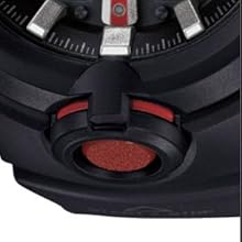 タフネスを追求し進化を続けるG-SHOCKから、ワイドフェイスを採用し、アーバンスポーツをテーマにデザイン進化を果たしたNewモデルが登場します。ラウンド形状のフェイスに、新開発の樹脂成型技術による立体針を組み合わせ、ロードバイクのタイヤやホイールをモチーフに、今までにないスポーティデザインに仕上げました。また、液晶部、レトログラードダイアル、文字板、時字、立体針などの成型パーツを複合的にレイヤー状に配することで、奥行きのある立体感溢れるフェイスとし、高い視認性とデザイン性を融合させました。また全てのボタン部をスラント形状(斜め)にすることで手首への干渉を軽減させています。デジタルとアナログのコンビネーションモデルとしては特徴的な大型フロントボタンを6時側に配置。時刻モードから、ワンプッシュでストップウオッチ計測を起動させることができる機能を搭載しました。また、ゴール時の目標時間を設定できるターゲットタイム機能によりロードレースなどの計測にも最適です。更に、レトログラード針にはデュアルコイルモーターを搭載することで多彩な動きを実現しました。洗練されたデザイン進化を遂げ、機能性とデザイン性を持ち合わせた新開発のG-SHOCK、「GA-500」の登場です。