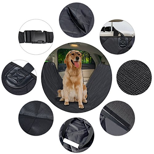 -. Feature : ANTI-SCRATCH - With 5-layers protection, 600D Oxford fabric, comfy PP cotton, anti-slip Polyester cloth liner, leakproof mesh bottom, PVC waterproof coating. Vitalismo Car Seat Covers for Pet is anti-scratch, durable and sturdy. ideal for leather seats. Best gift for people who keep pets. / WATERPROOF & KEEP YOUR CAR CLEAN - This Hammock Style Waterproof Dog Car Seat Cover is made up by great waterproof material. It will help you protect your car seat from pet hair, mud and water, no smell and no harm to your pet. Keep your loved car clean and the dog will be very comfortable too at the same time. / WIDELY USAGE - Dimensions is 54* 58 inch. This waterproof DOG SEAT COVER fits most cars trucks, SUV rear seats, Family Van and Sedan. it is also can serve as a hammock, bench seat cover, beach cover for your pet or a baby bed in the car. Keeps pet stains, spills, dander, dirt and odors off the back car seats of your vehicle. This pet car pad is foldable, if you not to use it, just fold it us and put it into the carrying bag. / SOFT for YOUR PET - This pet mat is soft and soothing to your dog. It provides traction so your dog can move around without slipping. Seat belt access allows the use of seat belt extenders to keep your pet in the back seat and from jumping out of the window / EASY TO CLEAN and INSTALLATION - When the cover gets dirty, you can wipe the cover pad with a wet towel cloth. It is very easy to install with quick release clips. Secure it in place using the two clip-together seat anchors and the four adjustable headrest loops. Two Velcro openings allow for accessing the seatbelt buckles. In less than a minute you'll have it fastened in place and ready to go.