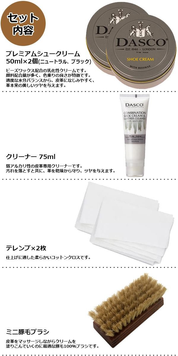 | セット内容 | プレミアムシュークリーム50ml×2個(ニュートラル、ブラック)、クリーナー75ml、テレンプ×2枚、ミニ豚毛ブラシ、ミニ馬毛ブラシ、ミニ竹ブラシ×2本、缶ケース |