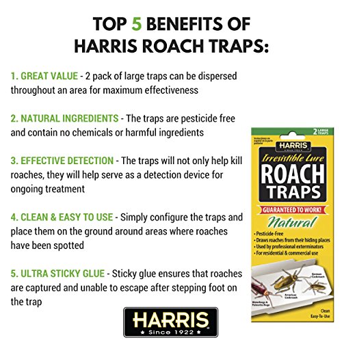 Harris roach traps are specially formulated lures that are irresistible to roaches and other insects. Simply place where insects are seen and throw away the trap after insects are caught. We recommend using these traps in combination with Harris roach tablets or Harris roach killer. A single roach or two is often a sign of an infestation. Attacking the problem using several different methods is the optimal course of action.Feature