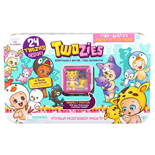 Twozies are the cutest little babies and pets who do everything Two-gether! But first they need to find their match! Help bring the babies and pets back Two-gether. Display them in their shadow boxes and collect all the characters to complete the teams. Are they Two Cute, Two Cool, Two Adventurous, Two Noisy, Two Cheeky or Two Wild? Have way two much fun on their play sets that are made for two! With over 140 to collect, Twozies need you to be two!.Feature