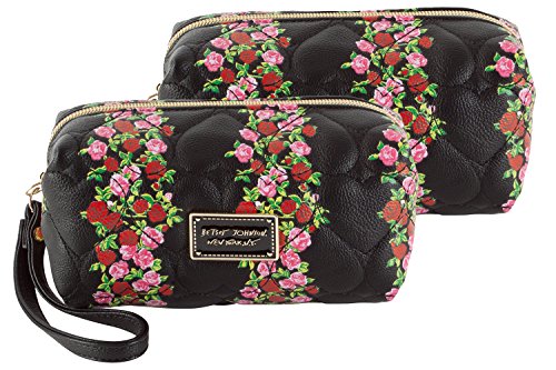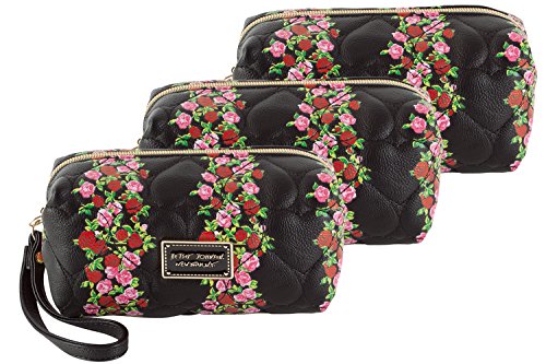 -. Title : Betsey Johnson Striped Floral Box Shape Wristlet Cosmetic Case