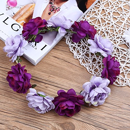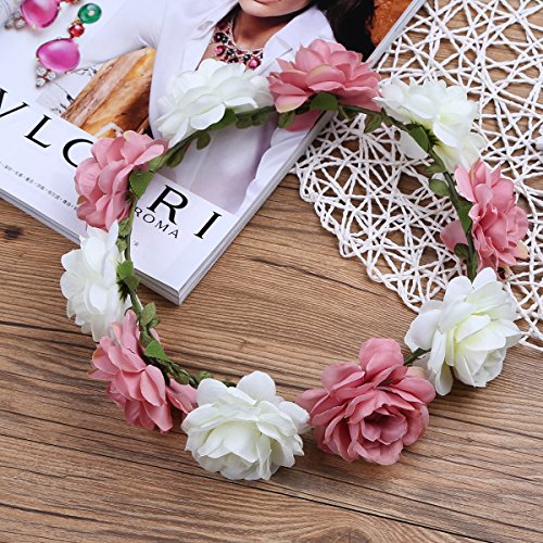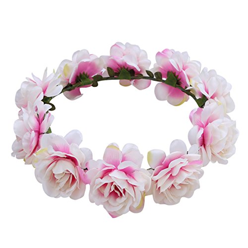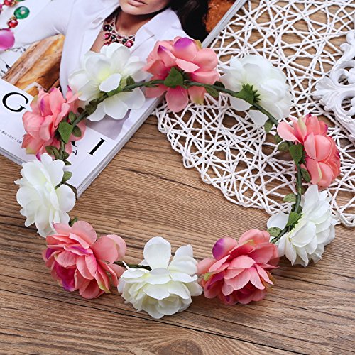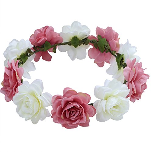 TiaoBug Women Girls Handmade Rose Flower Headband Hair Wreath Crown Garland for Wedding Parties