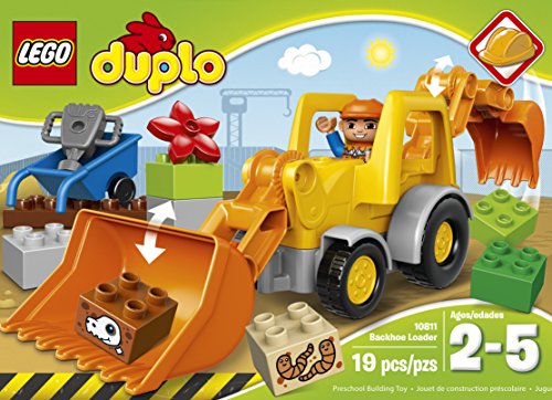 -. Binding : Toy -. Brand : -. EAN : 0673419250733 -. Feature : Features a buildable Backhoe Loader with 2 big shovels on posable working arms, plus extra bricks for scooping / Accessory elements include a wheelbarrow and a drill / Includes a construction worker DUPLO figure with a safety helmet / Backhoe Loader measures over 5" (13cm) high, 11" (29cm) long and 2" (7cm) wide / Use the special decorated bricks of worms and a skeleton as story starters to talk about what might be found in the ground -. Label : -. Manufacturer : -. Model : 6138005 -. MPN : 6138005 -. PackageQuantity : 1 -. PartNumber : 6138005 -. ProductGroup : Toy -. ProductTypeName : TOYS_AND_GAMES -. Publisher : -. ReleaseDate : 2016-08-01 -. Studio : -. Title : DUPLO Town 10811 Backhoe Loader Building Kit (19 Piece) -. UPC : 673419250733 -. Warranty : No Warranty