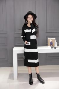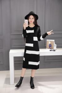 ニットワンピース ニット 長袖 膝下 膝丈 セーター ワンピ バイカラー 丸首