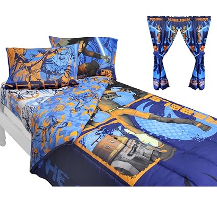 [Product Information]- Star Wars Rebels Fight twin/full comforter, full size flat sheet, fitted sheet, two standard pillowcases, two curtain panels, 41 x 63 inches each, and two matching tie-backs.