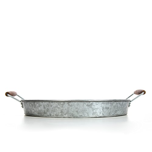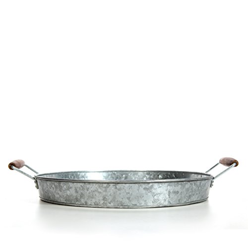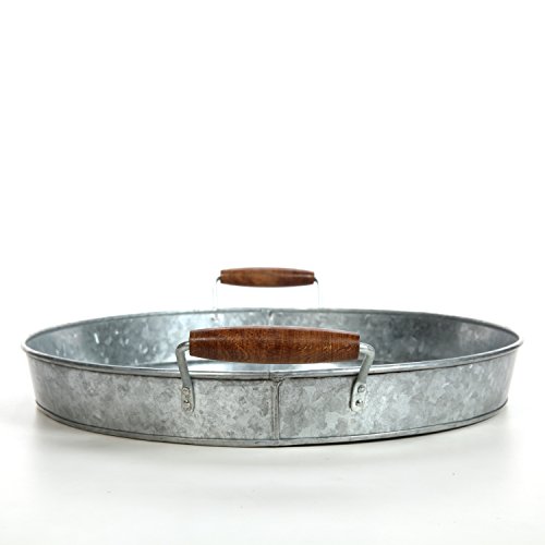 Hosley's 16"D Galvanized Tray w/Wooden Handles. Ideal Gift for Wedding, Party, Serving Ware, House Warming, Home Office, Spa, Aromatherapy.