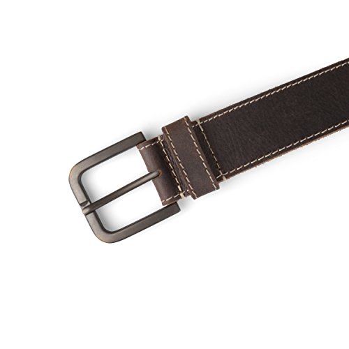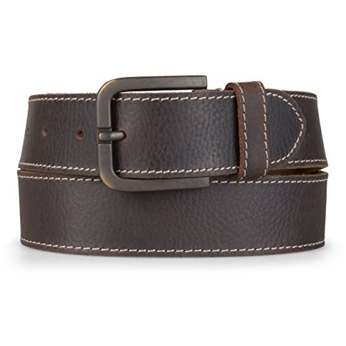 Binding : Apparel Product Description Accessorize in style with this leather belt by Timberland. This handsome belt features a genuine leather strap contrasting top-stitched detail. An antiqued single-prong buckle clasp completes the design of this versatile belt. Pair this upscale belt with your favorite jeans and a pair of lace-up shoes from Daxx to create sharp style on every occasion. All measurements are approximate and may vary by size. 0