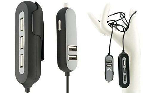 Premium Car Charger 10.8 AMP Splits 5 Ways USB Charging Hub For 5 Devices