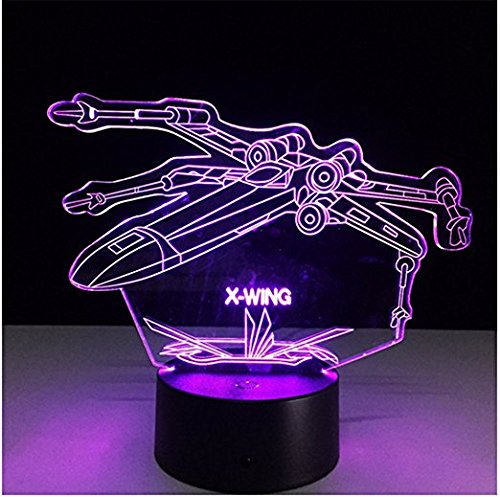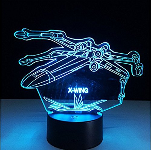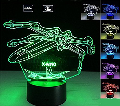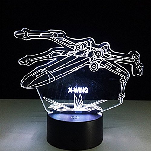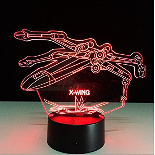 3D Illusion LED Fighter Night Light,7 Colors Gradual Changing Touch Switch Battleship Table Lamp for Holiday Gifts or Home Decorations (X-Wing Fighter)