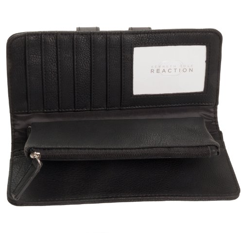 This trendy clutch wristlet wallet by Kenneth Cole Reaction is perfect for day or evening wear. This versatile women's wallet is stylish and convenient for all day wear. It features plenty of storage space, an easy access ID window, 3 slip compartments, a zippered coin pouch and 7 credit card slots. This wallet is fashionable and compact enough to carry alone with its detachable wrist strap or can easily be kept in your purse for easy access to such items as your ID or money. Measures 8.5" x 4" x 1"