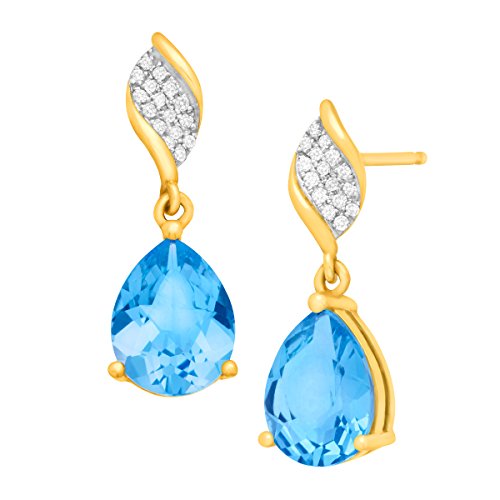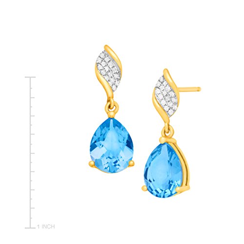 -. Title : 4 1/2 ct Pear-Cut Natural Swiss Blue Topaz Drop Earrings with Diamonds in 10k Yellow Gold