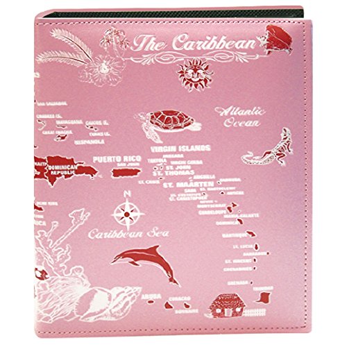 Photo Album Small Leather Caribbean Souvenir Photo Album Holds 100 Pictures 5" x 7" (Pink)