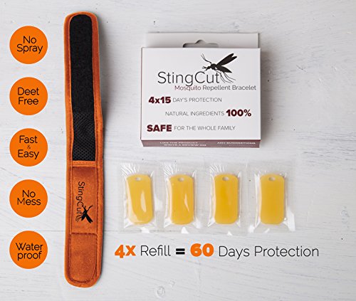 -. Title : Mosquito Repellent Bracelet + 4 Natural Oils Refills| The Best, Portable Insect Repeller For Home, Garden & Travel| No Spray, 100% Deet-Free| Non-Toxic 60 Day Protection For Kids & Adults By StingCut