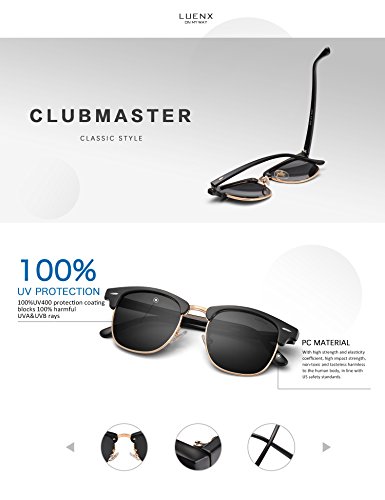 -. Title : Men Clubmaster Sunglasses Polarized Women: UV 400 Protection 51MM ,by LUENX with Case
