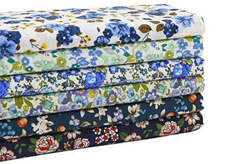 iEFUN 6PCS 20" x 22", 100% Cotton Fat Quarters Fabric Bundles, Quilting Fabric for Sewing Crafting (BLUE)