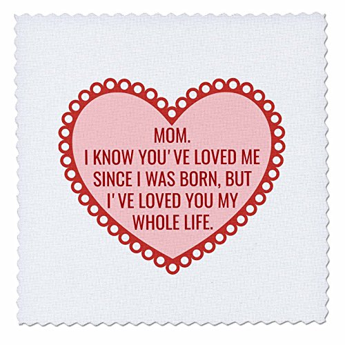 3dRose Mom I Know You Love Me Since I Was Born, Picture of a Red Heart Quilt Square, 20 x 20"