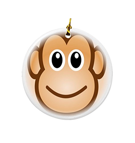 Rikki Knight Monkey Cartoon Face Design Round Porcelain Two-Sided Christmas Ornaments