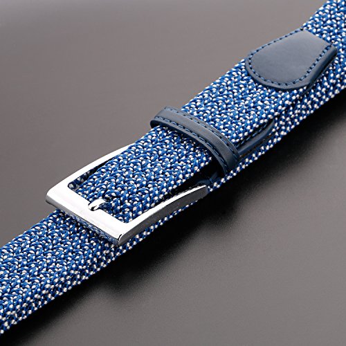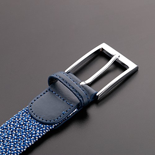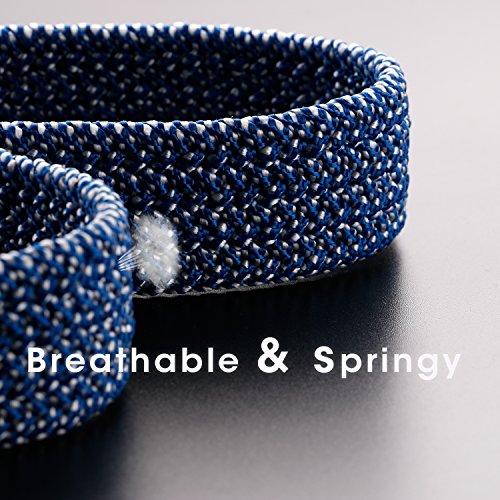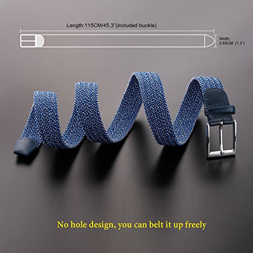 High quality woven elastic material and silver metal buckle, No hole design, you can belt it up freely and adjustable fit for comfort