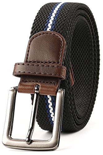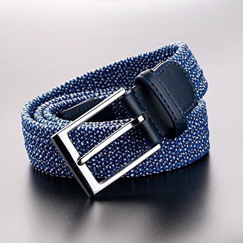 Men's Elastic Woven Stretch Casual Rubber String Belt Silver Metal Buckle