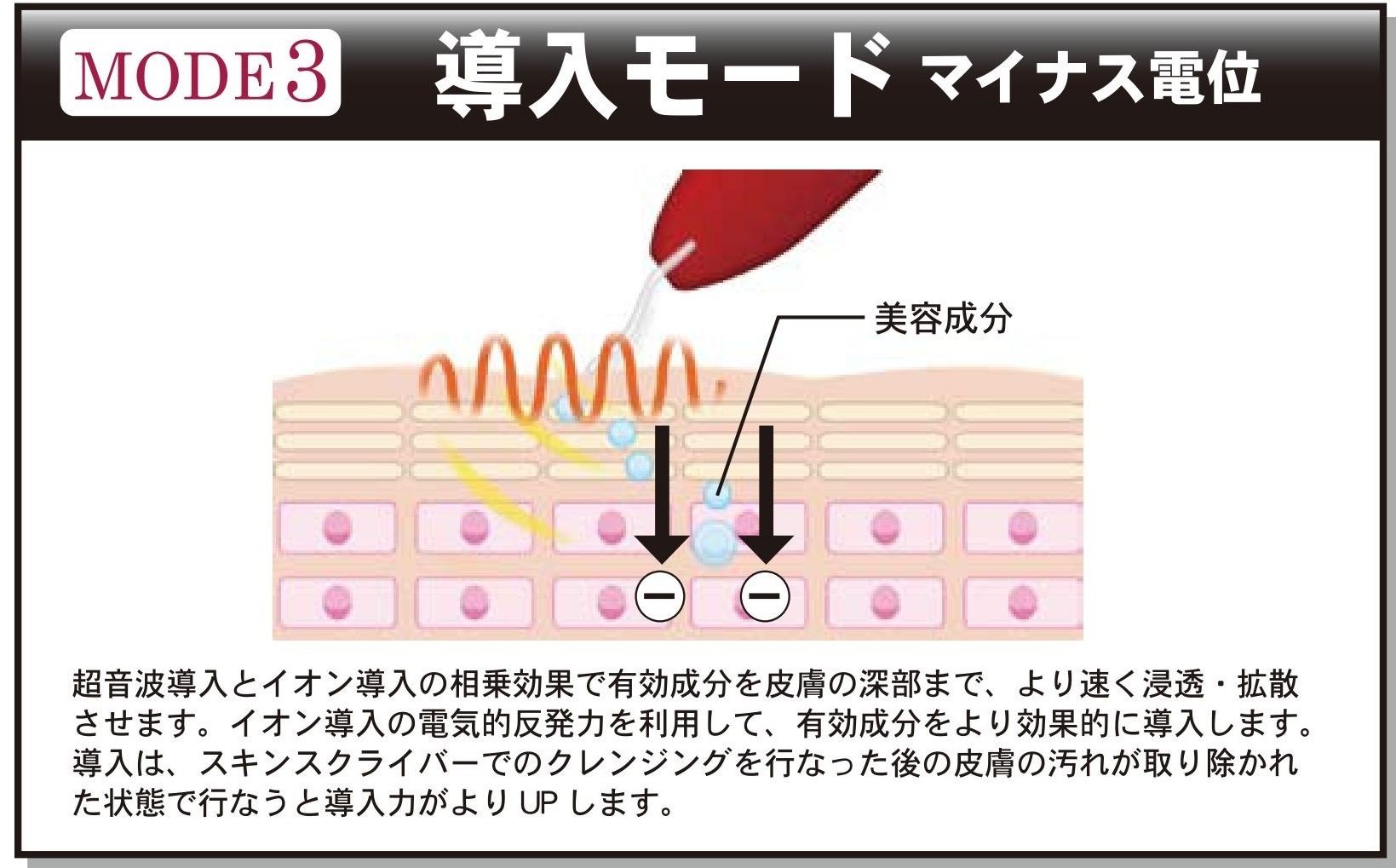 In addition, this product is equipped with "ion introduction mode" "ion derivation mode" "putting mode (PAD)".