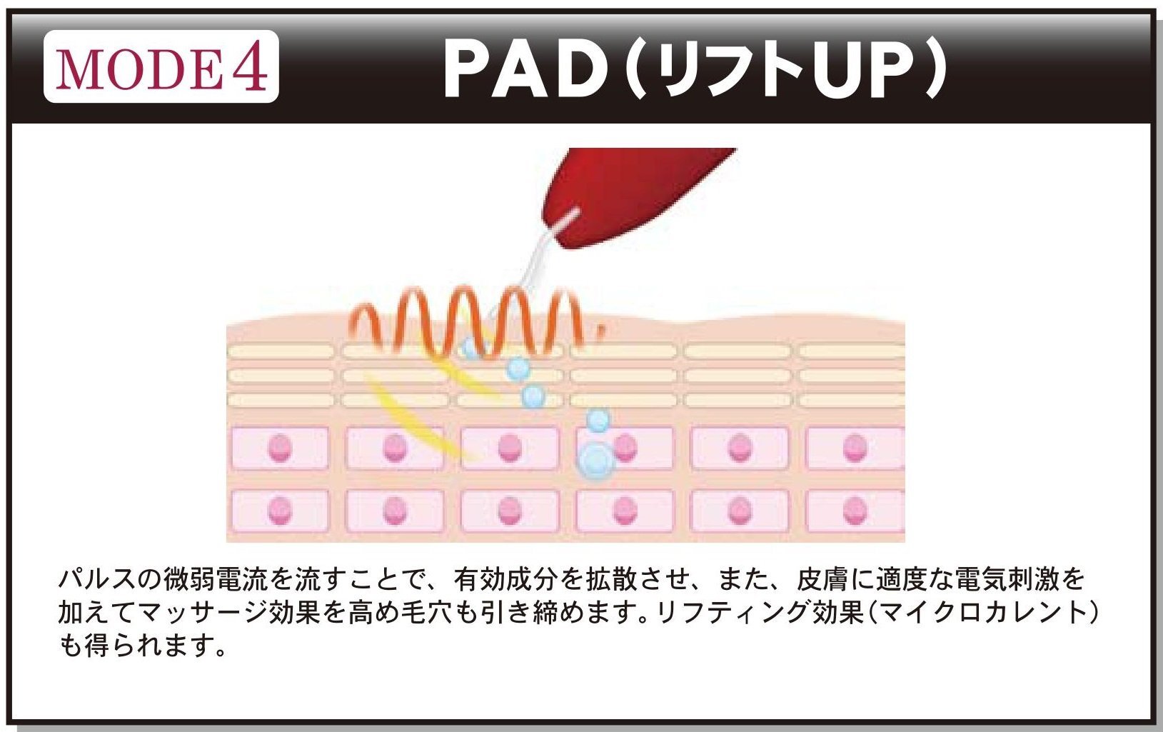 In addition, we can tighten your skin in "putting mode (PAD)", and you can expect lifting up.