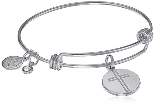 Shiny silver brass bangle with epoxied brass charm