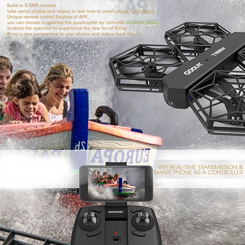 This WiFi FPV DIY detachable drone is super unique in its appearance. Have a look, you will love it. The barometer set height and built-in six-axis gyro functions that will promise you a stable flight. With 0.3MP camera and Wifi real time transmission, you can enjoy a wonderful flying experience.