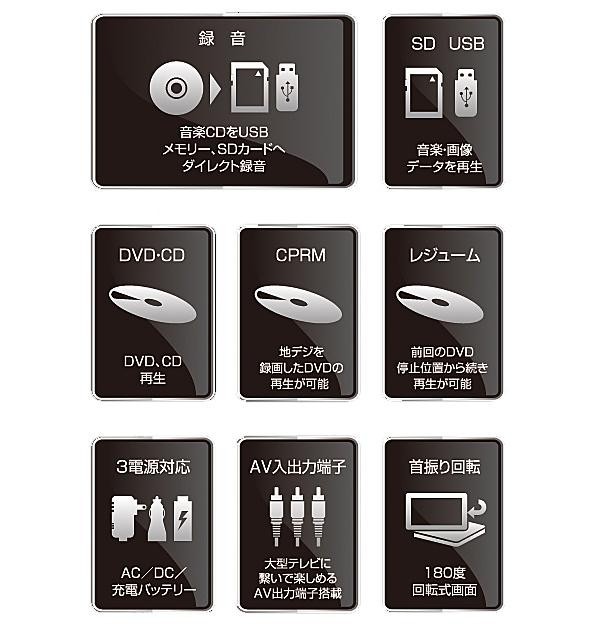 | 迫力の14.1インチ大画面搭載のポータブルDVDプレーヤー。 |