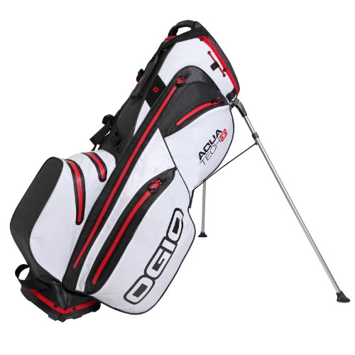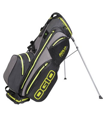 Stand up to wet weather with the Ogio AquaTech stand bag! Constructed with waterproof fabrics and thermo-welded seams, it provides a complete barrier against rain and stains, protecting your clubs, clothes and accessories from inclement conditions. This stand bag features a 6-way Performance top, fleece-lined valuables pocket with cell phone sleeve, a custom-fit rain hood and more.Feature
