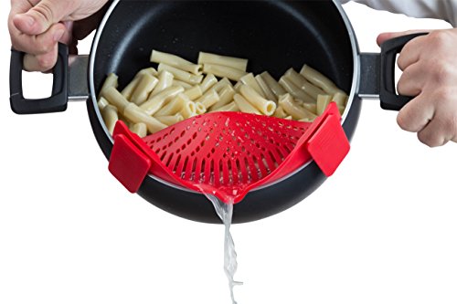 PRACTICAL STRAINING: Snaps onto Nearly All Size Pots, Pans and Bowls, Big and Small. Eliminating the transferring process completely. Just snap it on, tilt to strain, and remove excess liquid while food stays in the pot. No need for extra colanders, large strainers etc.