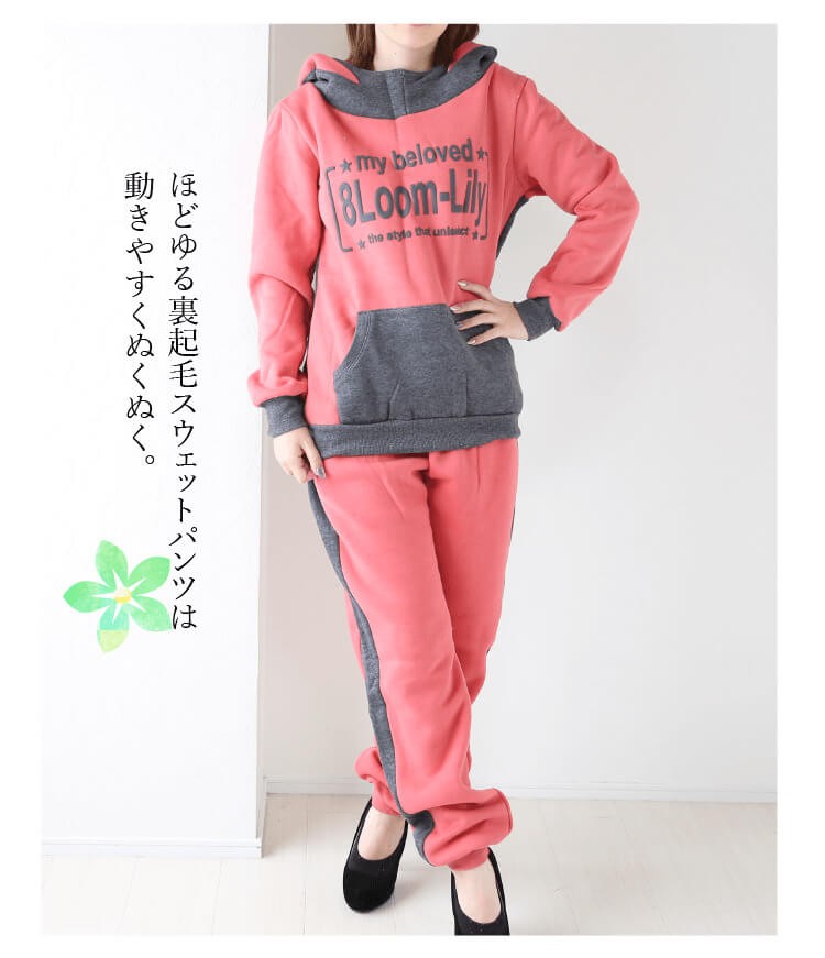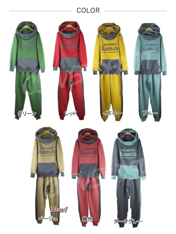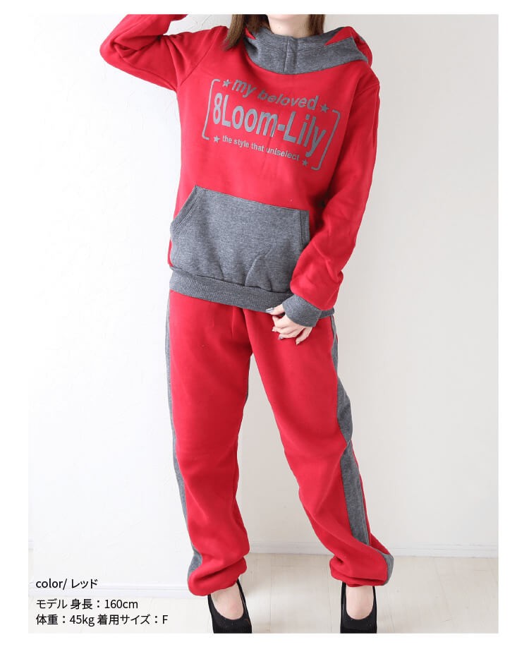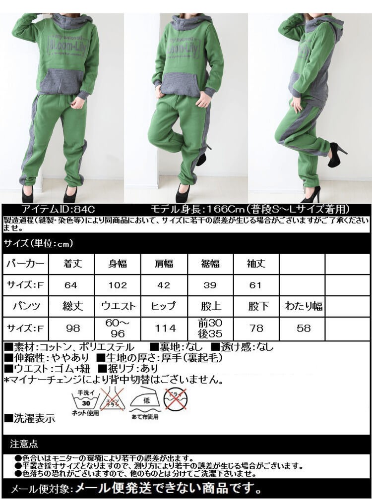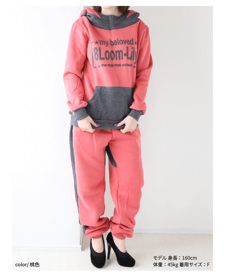 ? ■サイズフリー(ワンサイズ)<br> トップス(裏起毛+ボア入り)<br> 着丈:約64cm <br> 身幅:約102cm <br> 肩幅:約42cm <br> 裾幅:約39cm <br> アームホール:約24cm <br> 袖丈:約61cm <br> フード幅:34cm<br> フード高さ:30cm<br> <br> ボトムス(裏起毛)<br> 総丈:約98cm <br> ウエスト:約60~96cm <br> ヒップ:約114cm<br> 股上:約前30、後35cm <br> 股下:約78cm<br> 裾幅:約10cm<br> わたり幅:約58cm<br>