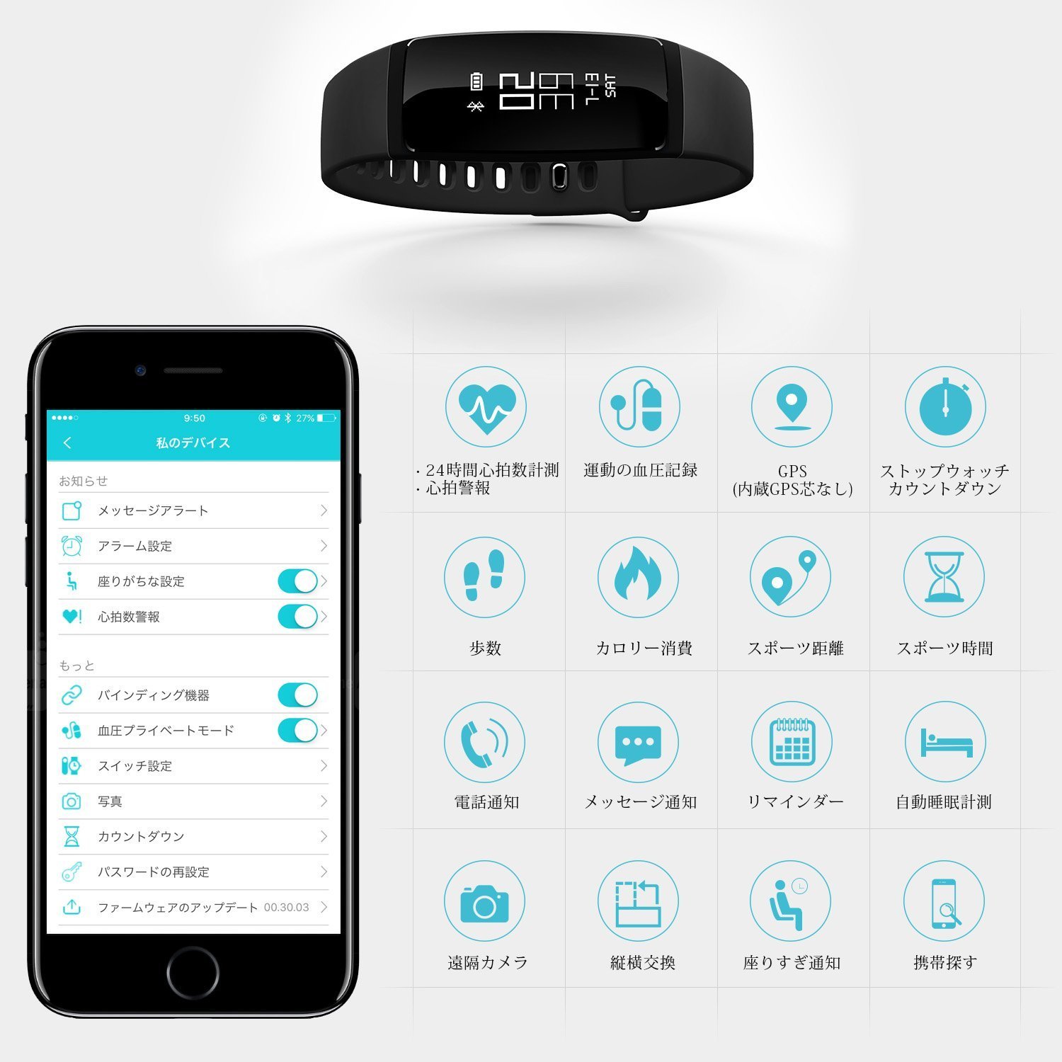 · Sleeping time and quality · Notification of state sitting for a long time