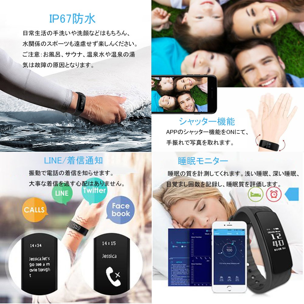 In dedicated APP, switch on incoming call, line, e-mail, Facebook, Twitter, Skype etc is turned ON, and when a message corresponding to incoming call arrives, smart wrist band informs with vibration, phone number, name or corresponding SNS icon