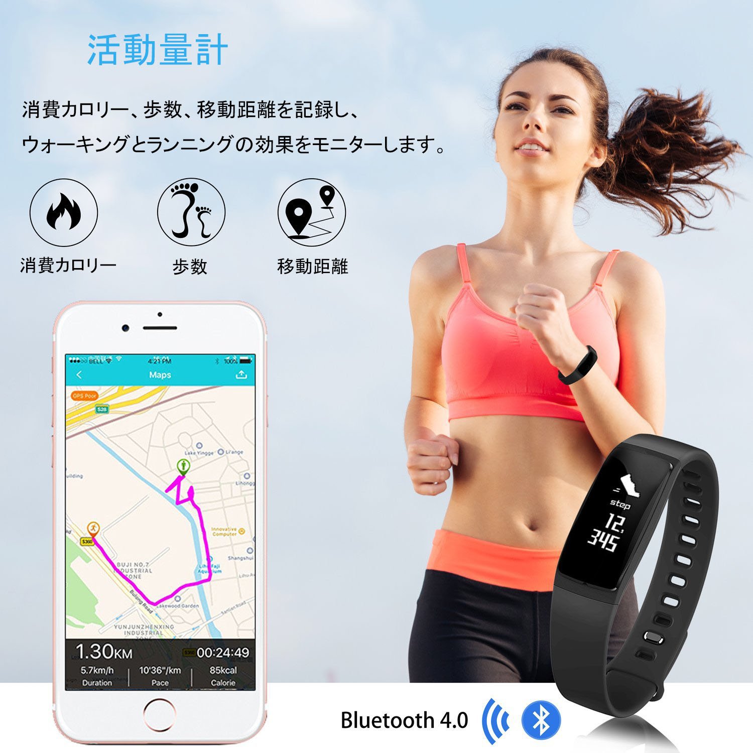 Record the number of steps, travel distance, calorie consumption, and monitor the effect of walking and running.