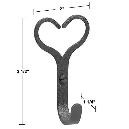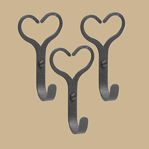 3 Robe Hooks Black Wrought Iron Heart Shape | Renovator's Supply