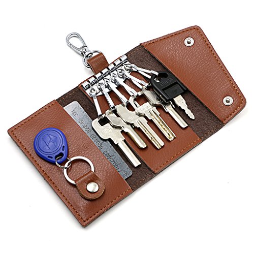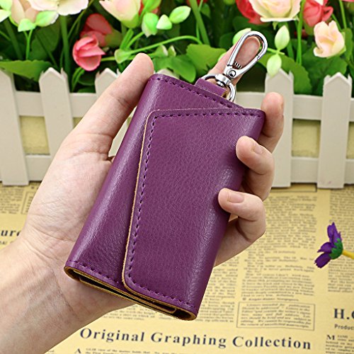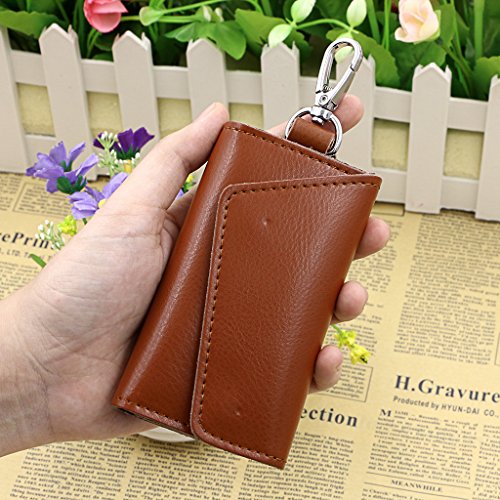 Hipiwe Leather Key Case Wallet Unisex Key Holder Wallet Pouch With Hooks Snap Closure