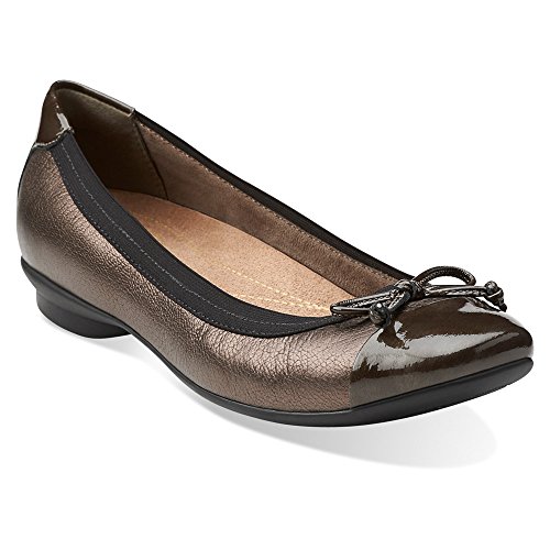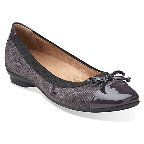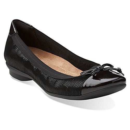 Soft suede pairs with patent leather details for a fashion forward take on a simple, stylish flat. Featuring a feminine bow embellishment, the Clarks Candra Glow is the perfect balance of sophisticated comfort and on-trend elegance