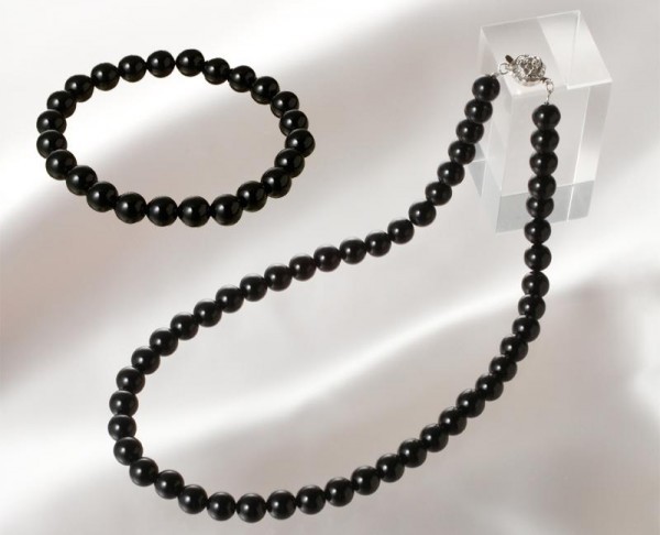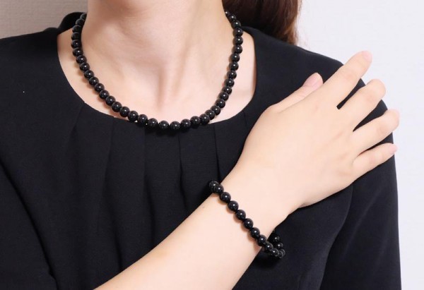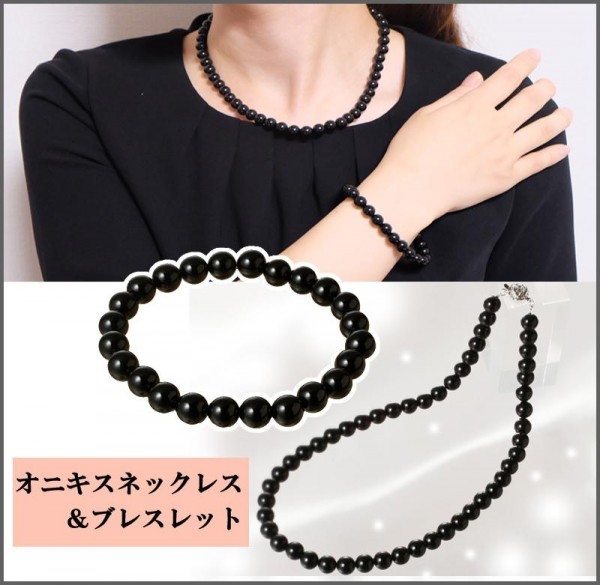 | 素材・材質 | ネックレス:珠/オニキス(ブラックカルセドニー)、クラスプ/真鍮、中糸/ステンレスワイヤー ブレスレット:珠/オニキス(ブラックカルセドニー)、中糸/ポリウレタンゴム |