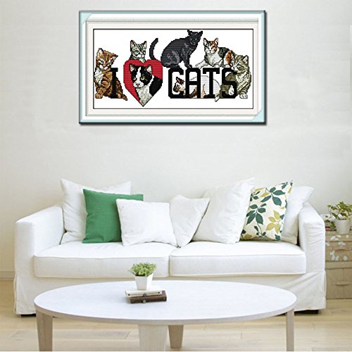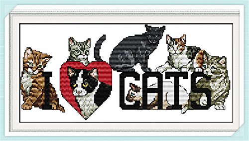 Stamped Cross-Stitch Kit Beginner 11CT Cross Stitch Set Animal Lovely Cat