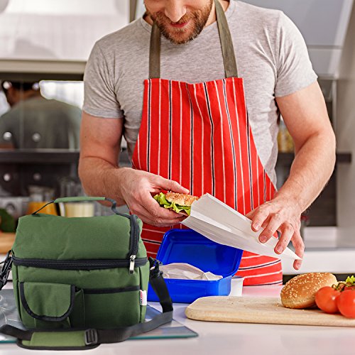 Pack Ahead Double Layer Insulated Lunch Bag - Portable Large Capacity with Adjustable Shoulder Strap (OLIVE GREEN)