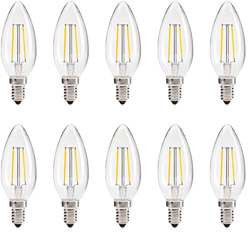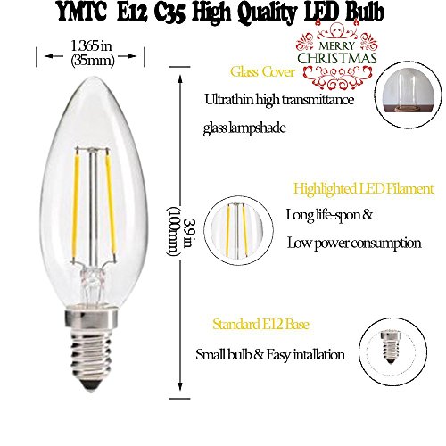 YMTC C35 LED Candelabra Bulbs,Dimmable E12 Base 2W 20W Equivalent White AC 110V for Candlestick, Pendant Lamp 10pcs