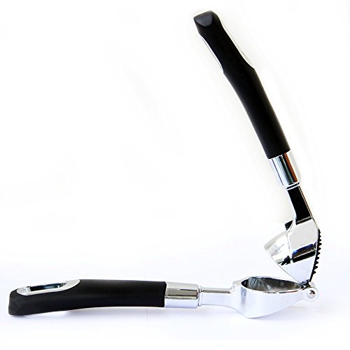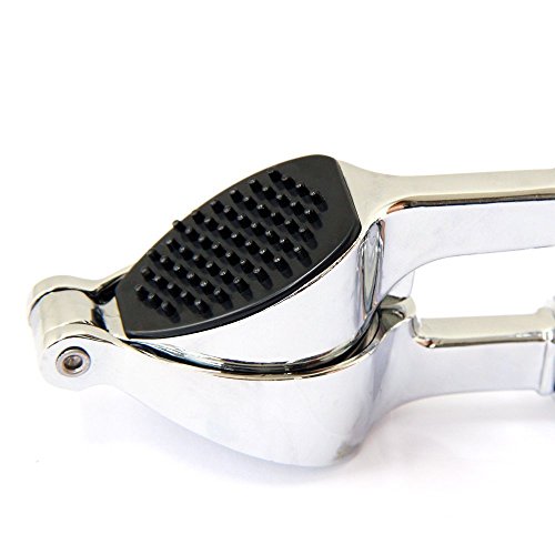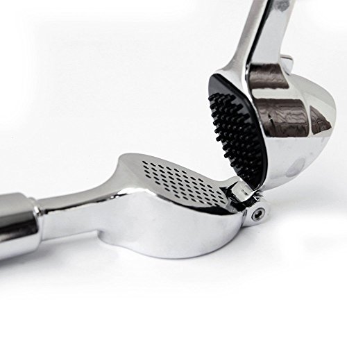High Quality and Durable: We offer you a high quality and durable product. This garlic press is made from professional grade heavy duty stainless steel with ergonomic thick handles and large capacity garlic chamber.