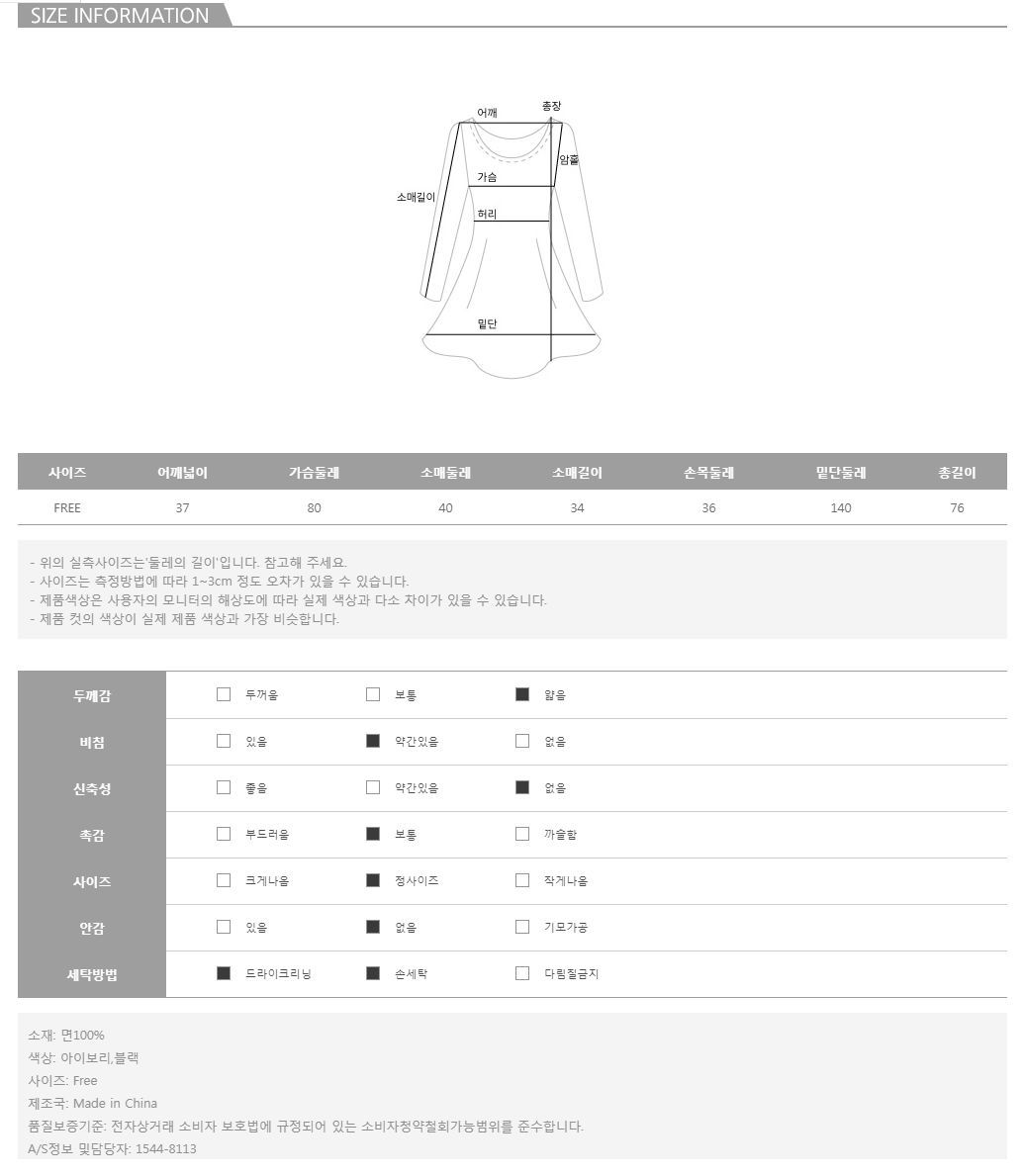 | 특이 사항 | 배송, 변경, 반품 환불에 대한 문의는 위 연락처로 문의 주세요. | ||