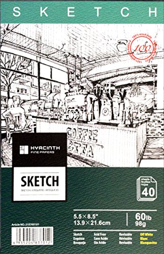 Product DescriptionHyacinth sketch book is ideal for light dark media including graphite, chalk, charcoal, markers, colored pencils, pens and gel pens.0