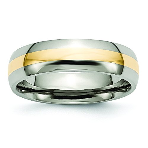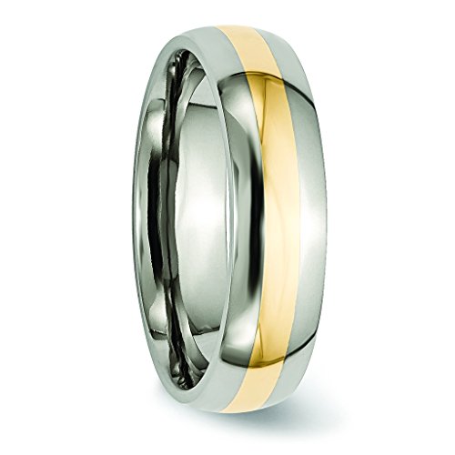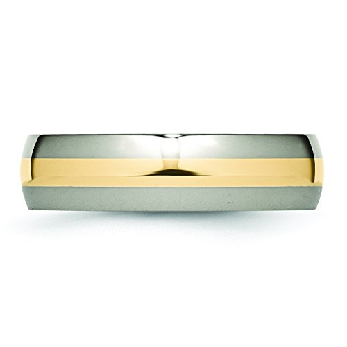 -. Title : 6mm High Polished Titanium with 14K Gold Inlay Domed Wedding Band