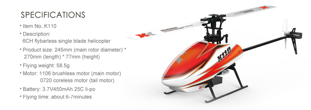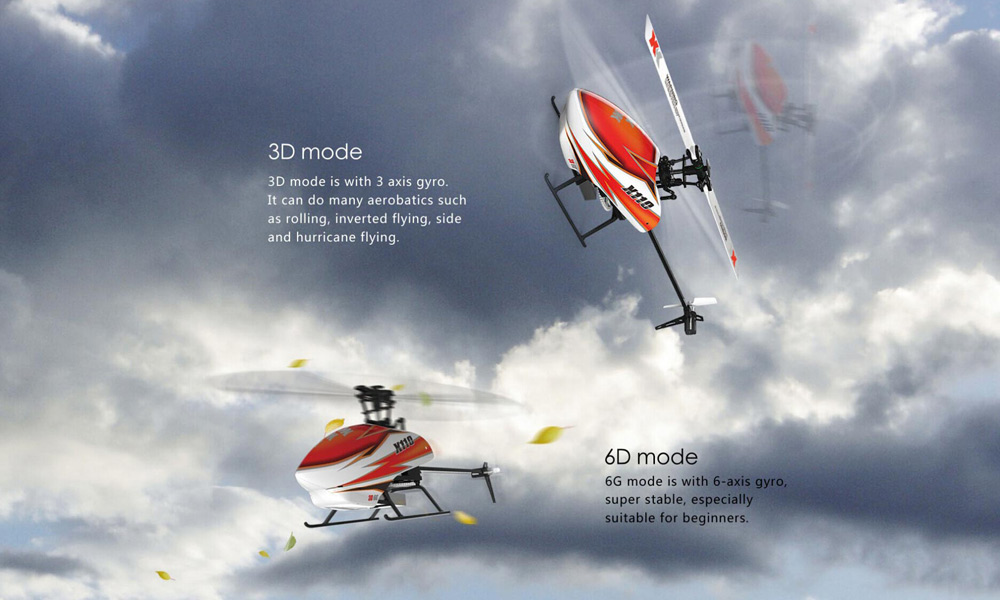 This is a super classic helicopter with excellent flight performance. Flybarless design, decrease resistance of rotor head. The blades can supply strong power and keep stability. Using new type gyro which is compatibel with 3D and 6G mode, you can make a variety of stunts by 3D mode; 6G mode is suitable for beginners especially.