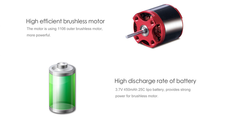 High efficient brushless motor, using 1106 outer brushless motor, more powerful.