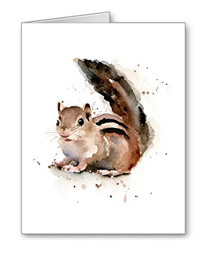 -. Feature : "Chipmunk" artwork by watercolor artist DJ Rogers. / Note card size is 4.25 x 5.5 inches / Matching white envelopes included. / Note cards are blank inside for your personal message. / Suitable for framing.
