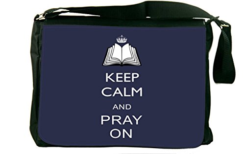 Studio : Rikki Knight LLC Publisher : Rikki Knight LLC Binding : Office Product Product Description Whether from home to the office, on a business trip or to school, the keep Calm and pray on -Blue color laptop bag notebook bag messenger bag school bag keeps you comfortable and your cargo safe and sound - this bag features pockets on the outside below the flap for your cellphone, pens, iPod, notebook etc. And also a zippered compartment on the inside, with plenty of space to store your textbooks, folders, files, etc. And up to a 14 inch laptop (laptop sleeve sold separately) - the vibrant image on the front is professionally printed and will not fade or peel with time and this bag will surely be an eye catcher wherever you go with it. Disclaimer: all images are printed directly into the material - the Texture of the image will always be a flat surface. Any images that appears to be 3D, textured, or glittery are flat printed images. 0